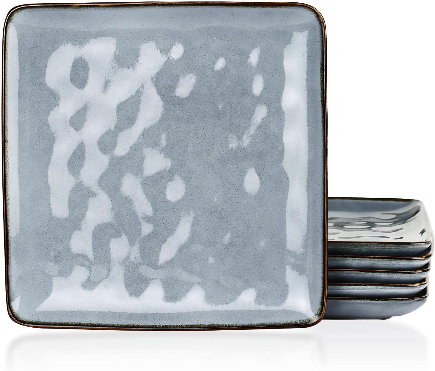 famiware Square Dinner Plates Set of 6, Large Pasta Plate, Ocean Square Stoneware Dessert Plates Dish Set for Kitchen, Reactive Glaze, Microwave Dishwasher Safe, Scratch Resistant, Blue