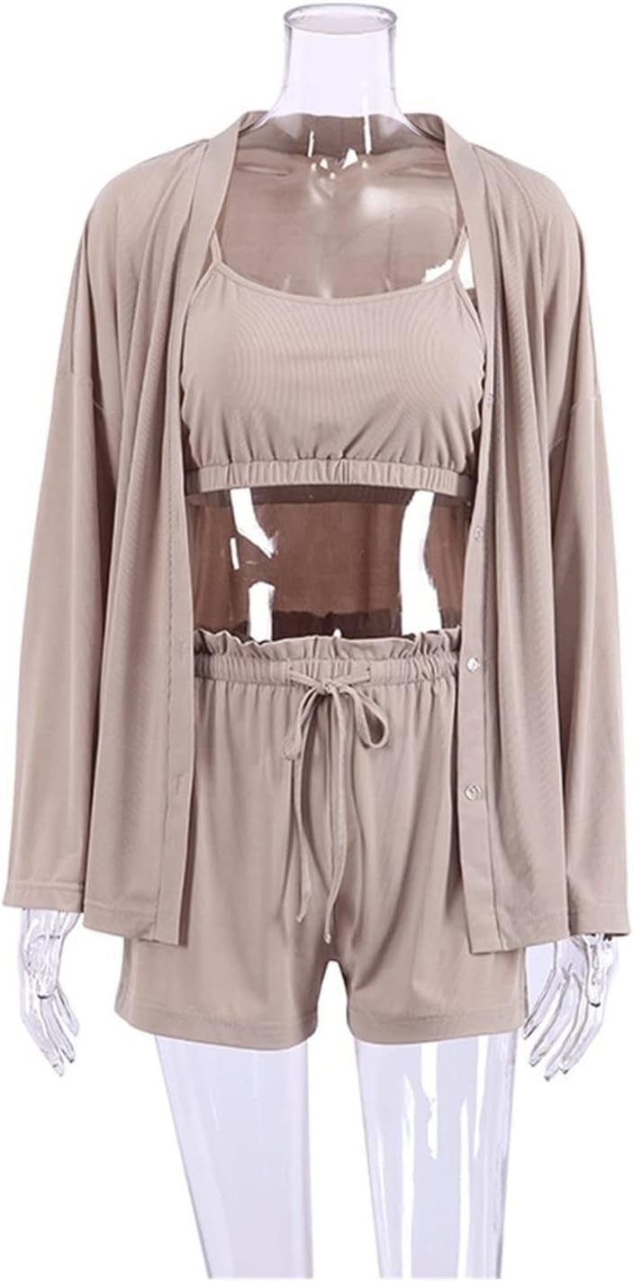 ZLXDP Summer Knitted Ice Silk Ribbed Wrapped Underwear Comfortable Female Pajamas Three Sets of Home Wear Women (Color : D, Size : S Code)